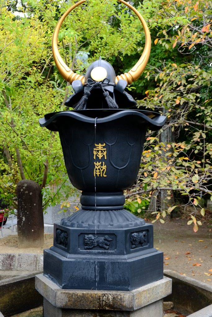 手水舎が兜。この神社なかなかにインパクトありな神社であった。