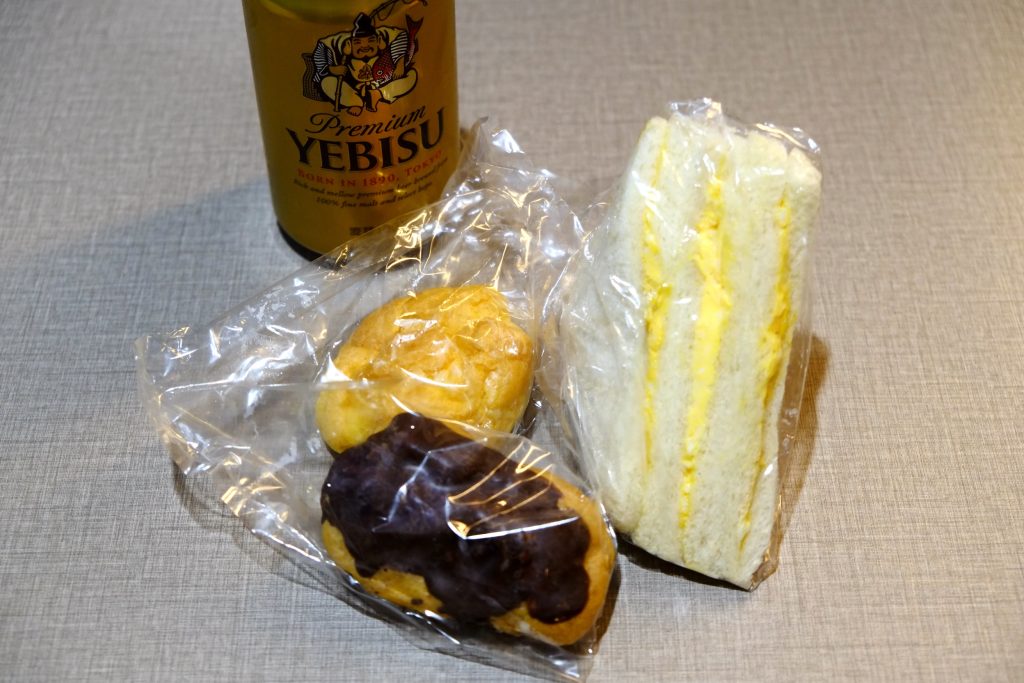 その後明日の朝ごはんなどを調達しつつ宿へ。夜食のパンと共に。やおきパンで買えたもの。パンはこれしか売っておらず、180円。本命のシュークリームとエクレアはまだ売っていた。50円と60円という破格なお値段。福岡ほんと素晴らしいと思いつつ。2日目に向けて就寝。